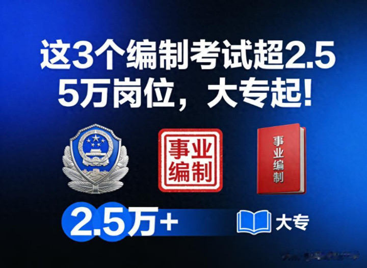 国考没把捏? 3 个编制考研狂招 2.5 万 +, 大专可报! 附东谈主群适配指南