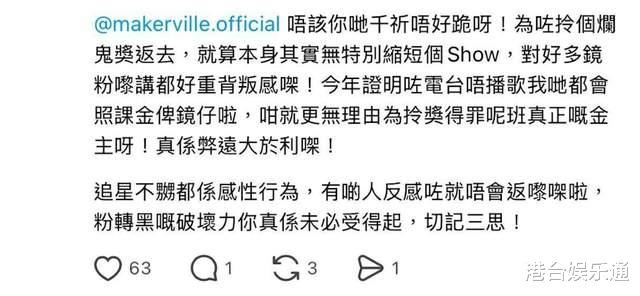 另一位粉丝则警告谈:“ViuTV皆备不成败北!为了拿个破奖且归,就算本日莫得缩小演唱会期间,对镜粉来说亦然很严重的挣扎。此次仍是贯通注解了,就算电台不播MIRROR歌,咱们照样氪金解救MIRROR,是以更莫得情理为了拿奖,得罪咱们这群信得过的金主!追星向来都是理性的活动,有些东谈主淌若反感了,就脱粉不会回顾了,粉转黑的冒失力你们真是承受不起,请三想。”
